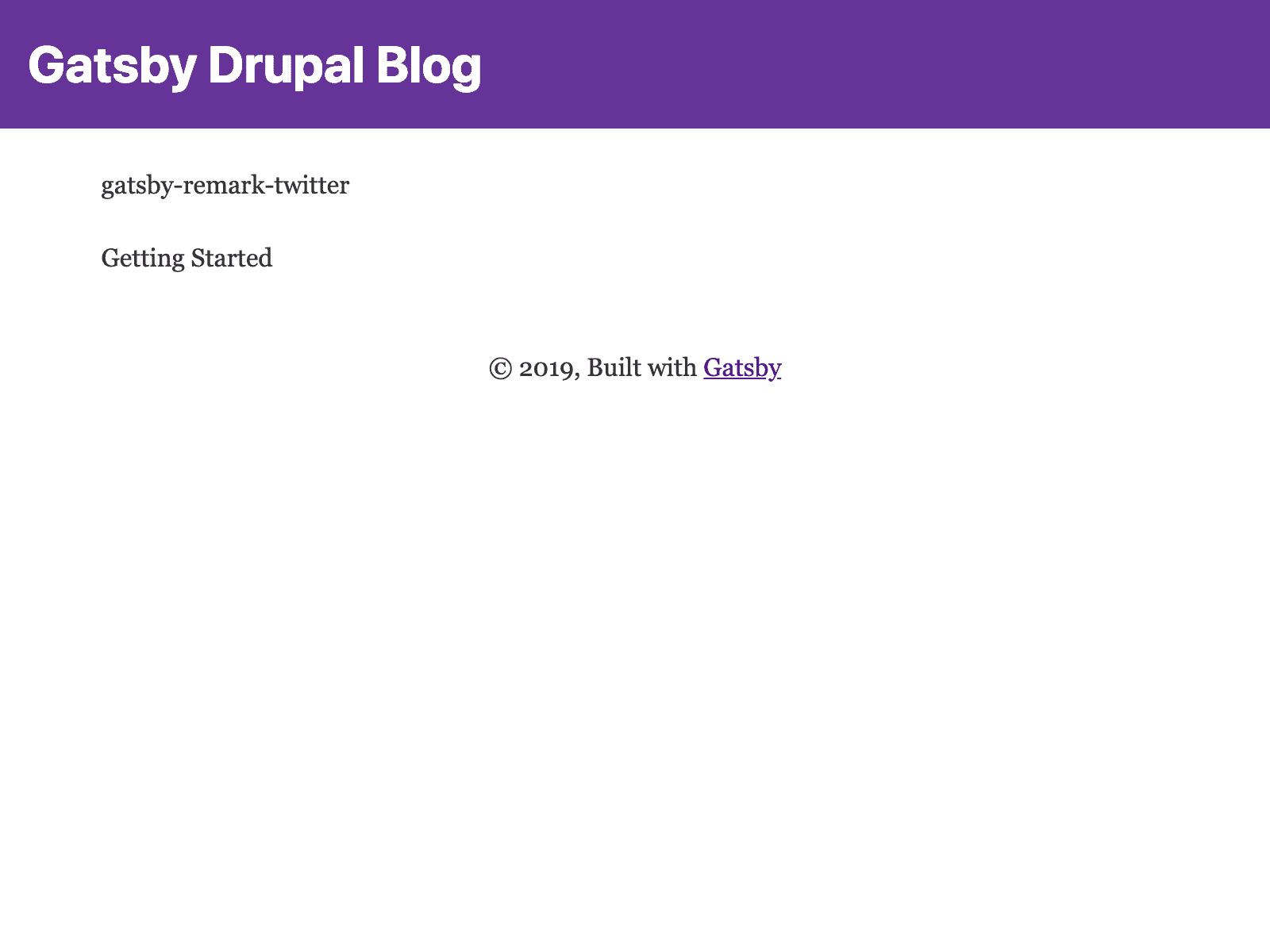 import React from 'react';import { graphql } from 'gatsby';import Layout from '../components/layout';import SEO from '../components/seo';export default function IndexPage({ data }) {return (<Layout><SEO title="Your Great Blog" description="All my blog posts" /><ul>{data.allNodeArticle.edges.map(({ node }) => (<li key={node.title}>{node.title}</li>))}</ul></Layout>);}export const indexQuery = graphql`query GetAllBlogPosts {allNodeArticle {edges {node {title}}}}`;