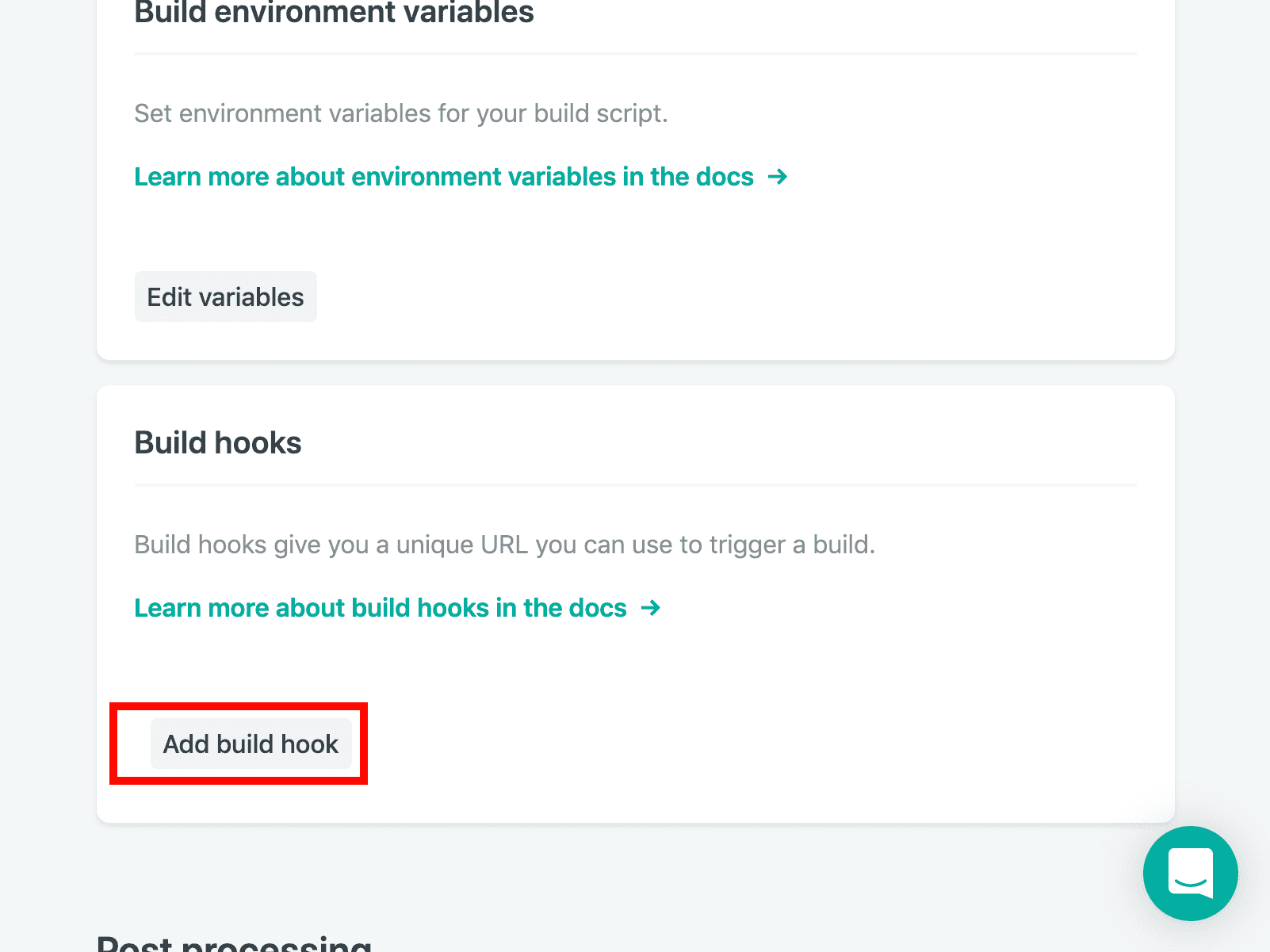 We can now add a build hook that triggers a Netlify re-build. Using the toolbar: